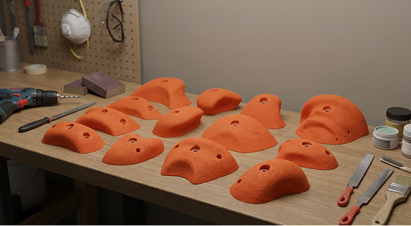 Smooth holds have no added texture and create a challenge through the use of friction and body position. Climbing requires precise body positioning and weight control. They are often used on large macros and volumes. They create a modern, technical style of climbing.