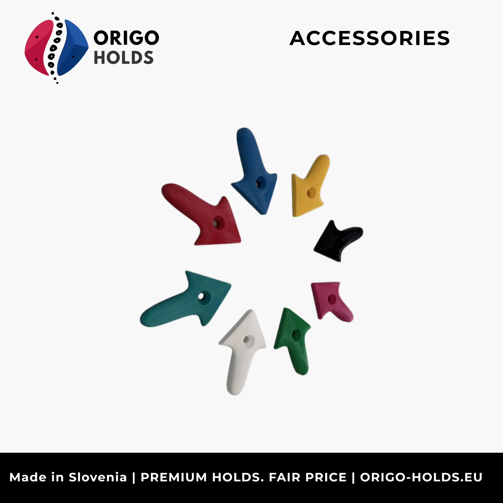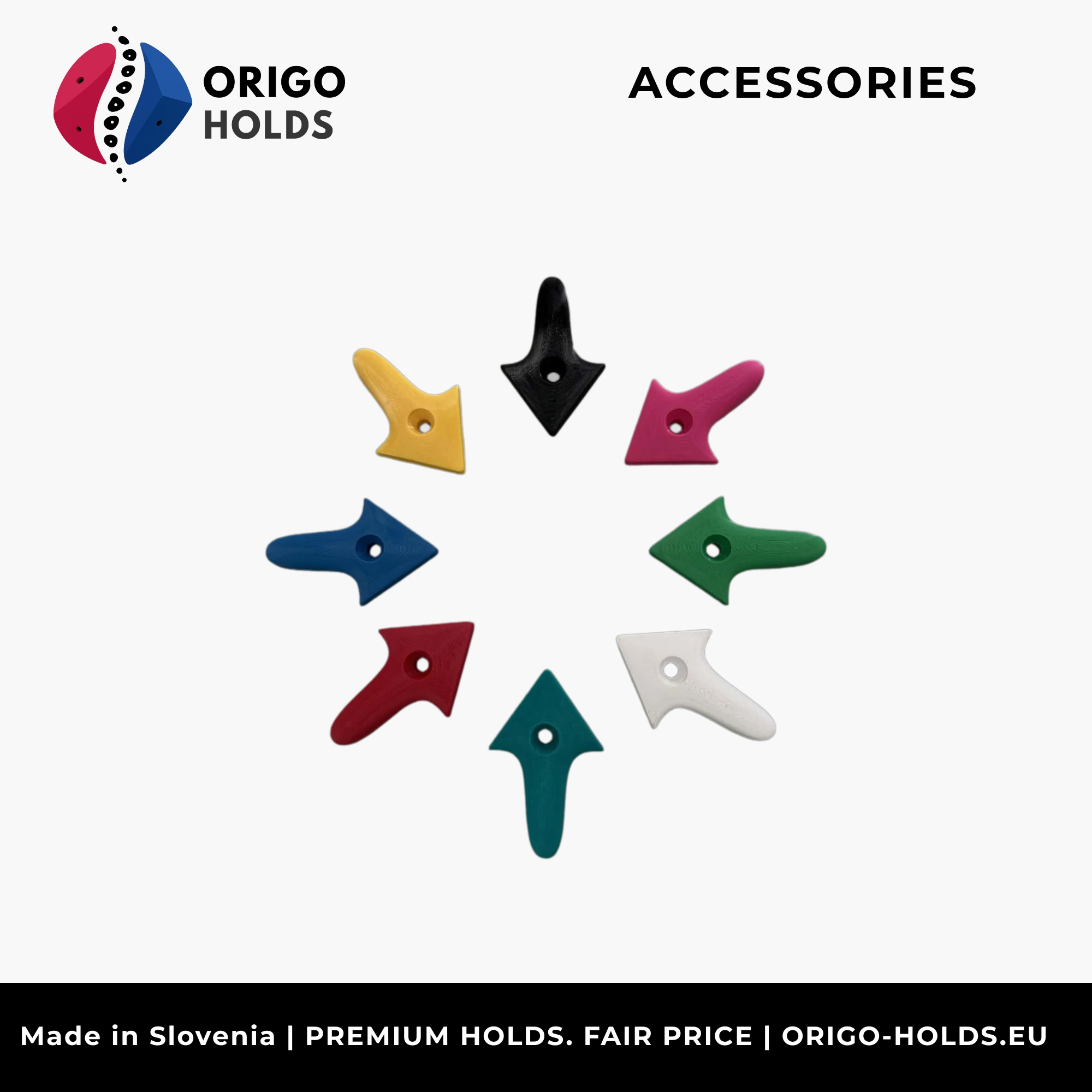 Route marking arrows are an essential tool for any route setting operation. They clearly indicate the start, direction, and finish of a route, helping climbers orient themselves quickly and enjoy a better experience on the wall. Available in packs of 100, made from durable recycled ABS or PU material that ensures a long lifespan, good visibility, and easy use during everyday route setting. The minimalist design and optimal size allow for quick installation and clear movement communication — from the start to the top of the route.