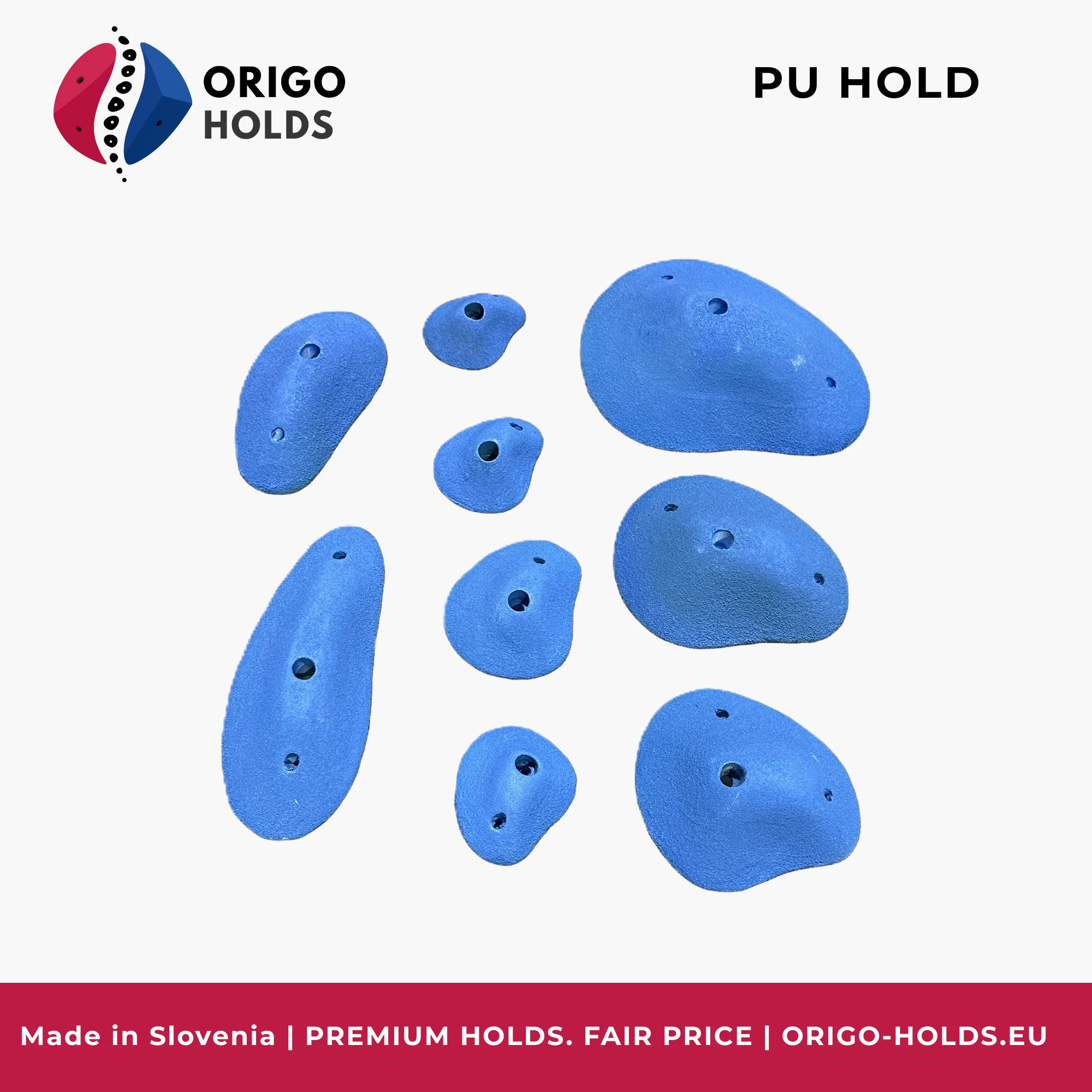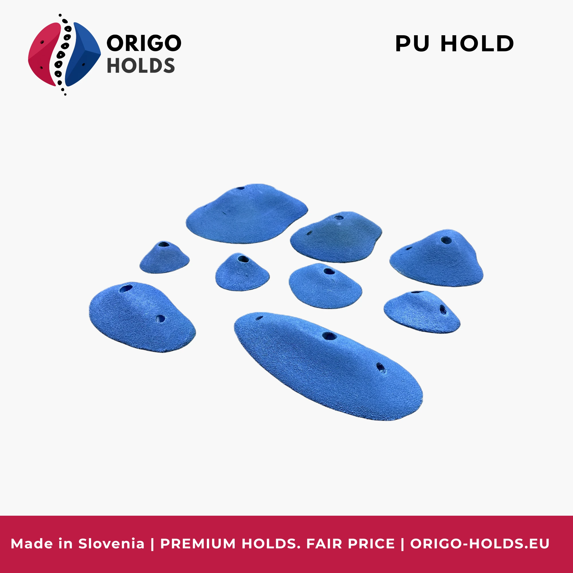The Sloper 1 – Family brings together sloper holds of various sizes, all relying on open-hand grip, good friction, and precise body positioning. This family is incredibly useful for technical lines where the climber can’t count on an obvious positive edge — instead, they must guide movement through position and tension. The holds perform well on slabs, vertical walls, and gentle overhangs depending on wall orientation. Setters can build modern sequences that demand feel, balance, and compression.
